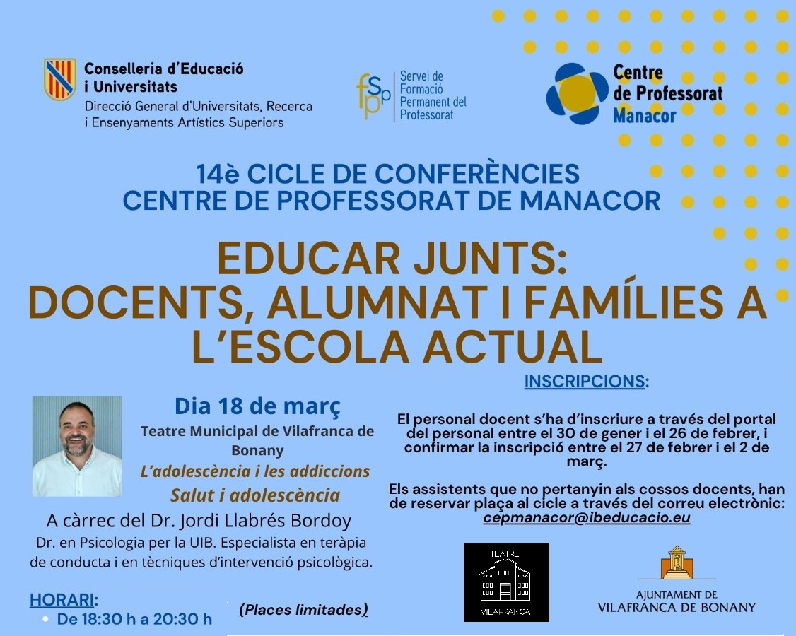 Ho organitza : CEP Manacor – Servei de Formació Permanent del Professorat – Conselleria d’Educació i Universitats.