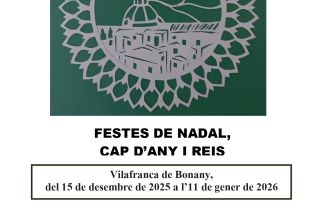 VILAFRANCA DE BONANY Del 15 de desembre a l'11 de gener de 2026 Després de les Festes de Santa Bàrbara, Vilafranca es prepara per les Festes de Nadal, Cap d'Any i Reis amb un programa d'activitats per a tothom, del dilluns 15 de desembre al diumenge 11 de gener de 2026. El programa inclou moltes activitats per a tots els públics, amb concerts, contacontes, tallers, festes, ... amb el tema